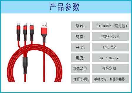 一拖三数据线是安卓、Type-C与USB接口的一种连接介面,